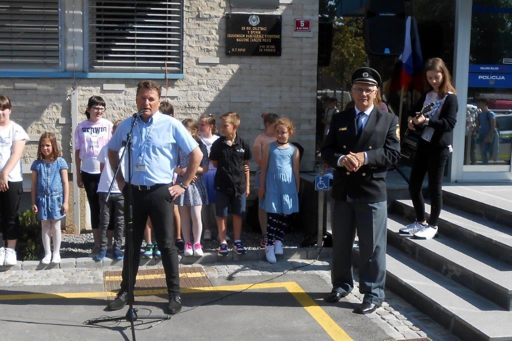 Pred stavbo Policijske uprave je udeležence v imenu vodstva in delavcev PU Murska Sobota pozdravil g. Andrej Bračko. O pomenu spominskega obeležja plošče Maneverski strukturi pa je spregovoril naš predsednik g. Drago Ribaš.