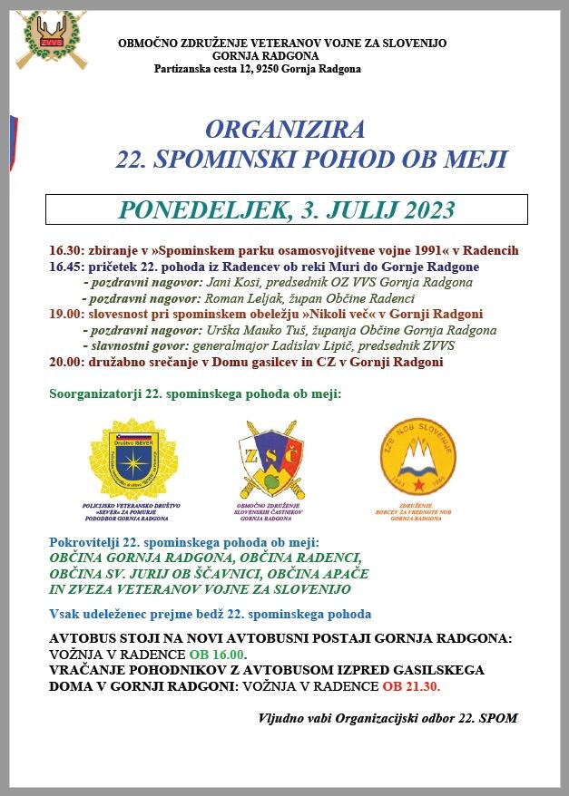 Pokrovitelji 22. spominskega pohoda ob meji: